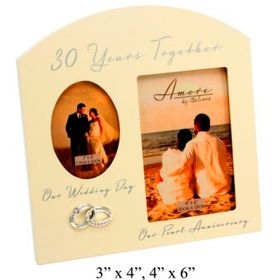 Pearl Wedding Anniversary photo frame. Free-standing, Measurements approx. - 23 x 23.5cm, with space for two photographs 7.5 x 10cm and 10 x 15cm.