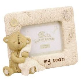 Button Corner - My Scan Photo Frame Takes one 3" x 2" Baby Scan / Ultrasound photo Beautiful resin frame with 3D Teddy Bear and My Scan motif.   All the Button Corner range comes delightfully packaged and would make an excellent gift or accessory to any new nursery.
