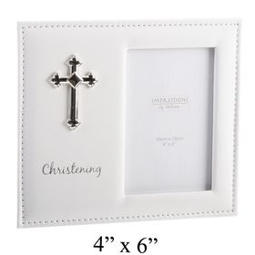 White Faux leather Padded style Frame Holds 4 x 6" Photo Gift Boxed