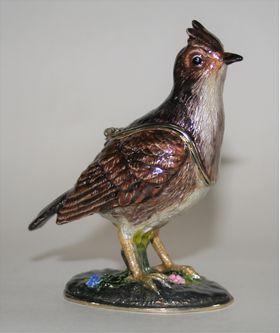 Although not a showy bird this piece is beautifully modelled and hand finished in coloured enamels. It will be an interesting addition to the range of bird trinket boxes and contrasts well with the Yellow Hammer and Lapwing.